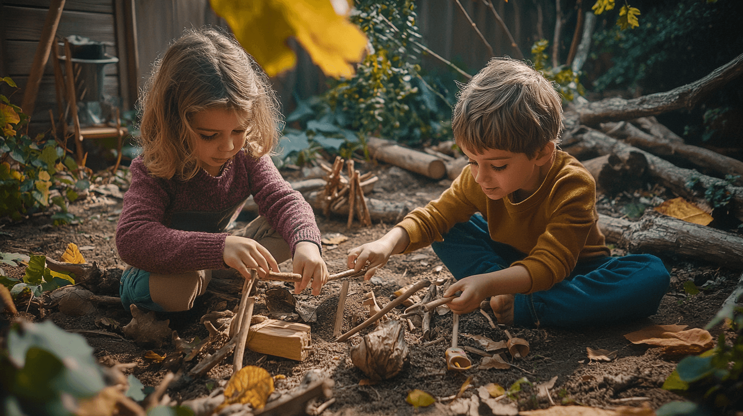 Ein weiteres kreatives Spielkonzept ist das Bauen von Tipis oder Hütten aus Naturmaterialien. Mit Ästen, Blättern und Seilen können die Kinder ihre eigenen Rückzugsorte im Garten schaffen. Diese Bauprojekte fördern nicht nur die Kreativität, sondern auch die Teamarbeit und Problemlösungsfähigkeiten der Kinder.